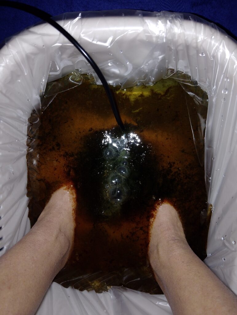 足裏デトックスでは、マイクロウェーブを起こし、足浴の水を人体と似通った電位状態にして、水中のマイナスイオンにより毒素(プラスイオン)を排出させます。